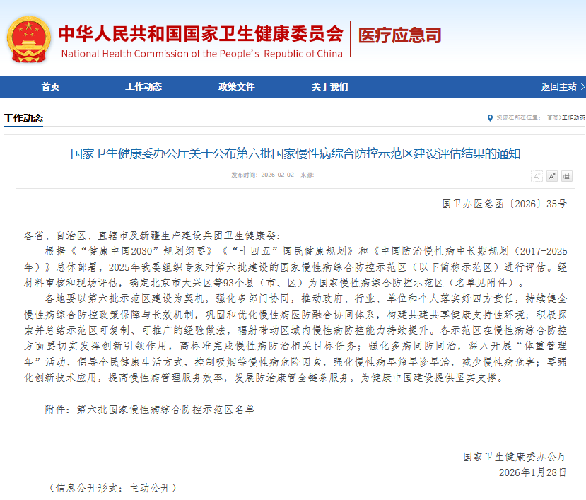 近日,国家卫生健康委公布第六批国家慢性病综合防控示范区建设评估结果,临泽县榜上有名,成功跻身国家级示范区行列,为“健康临泽”建设再添一张含金量十足的国家级名片。