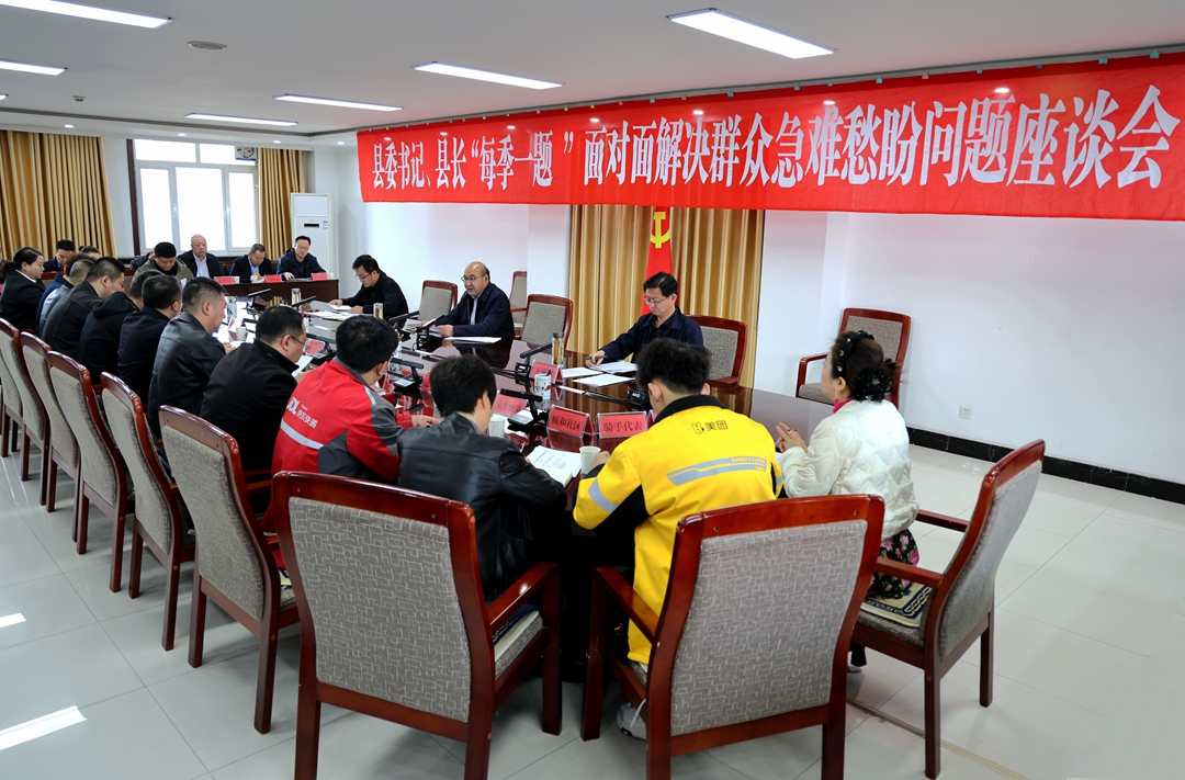 3月20日,县委书记、县长“每季一题”面对面解决群众急难愁盼问题座谈会召开,邀请部分县人大代表、县政协委员、居民代表、快递外卖公司代表和相关部门负责同志,围绕“提升新就业群体服务管理水平”主题,共同探讨问题症结,研究破解制约瓶颈。县委书记张成琦主持会议并讲话,县委常委、副县长王延琳,县政府副县长杨寅参加。