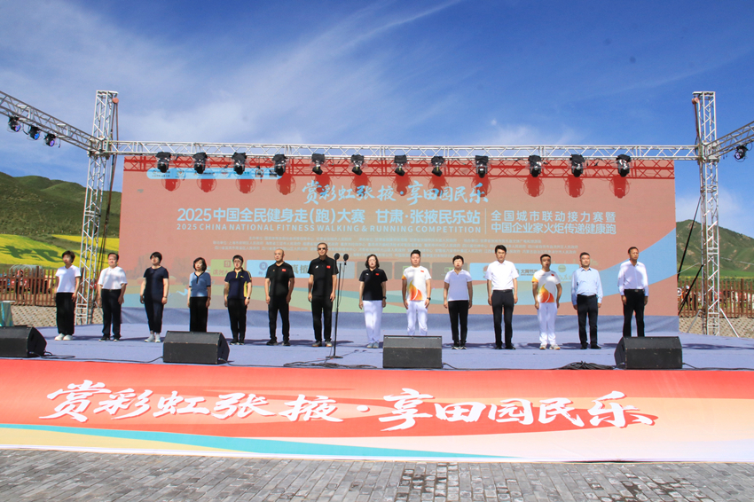 7月26日上午,2025中国全民健身走(跑)大赛(甘肃・张掖民乐站)全国城市联动接力赛暨中国企业家火炬传递健康跑在民乐县扁都口生态休闲旅游景区隆重开幕。国家体育总局社体中心党建工作部主任杨树刚宣布大赛开幕,甘肃省社会体育管理中心主任吴红等出席开幕仪式。副市长娄金华出席开幕式并讲话,县委副书记、县长张晓龙致辞。