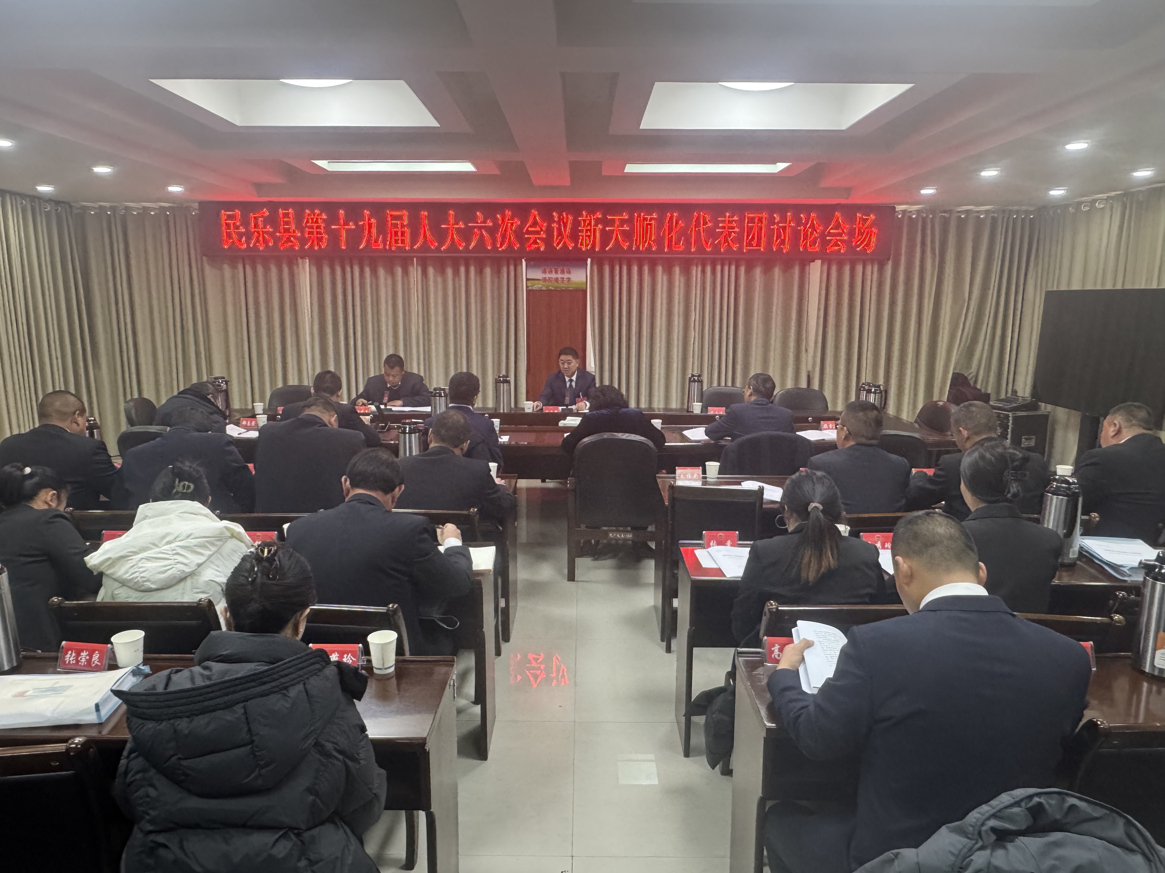 1月29日,县人大常委会党组书记、主任张自新参加第十九届人民代表大会第六次会议新天顺化代表团审议,与代表们一起审议县人大常委会工作报告和法检“两院”工作报告。