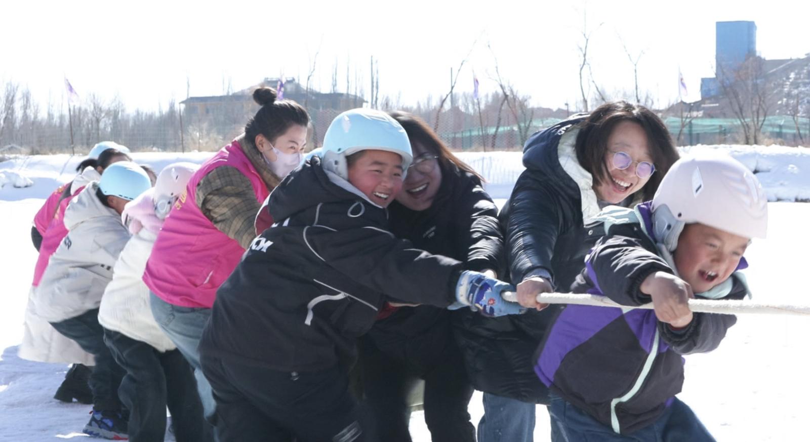 在佛山滑雪场,众人畅游在雪白无比的冰雪世界,在皑皑白雪之上尽情玩乐。孩子们与爱心妈妈们默契配合,完成了一项又一项趣味游戏,欢笑声交织在一起,气氛热烈非凡。这不仅让孩子们领略了家乡冰雪之美,锻炼了孩子的意志品格,也增进了他们与爱心妈妈之间的信任与亲密感。