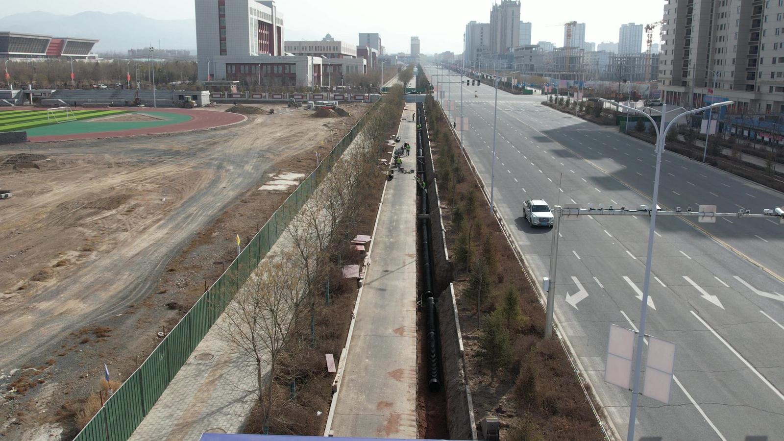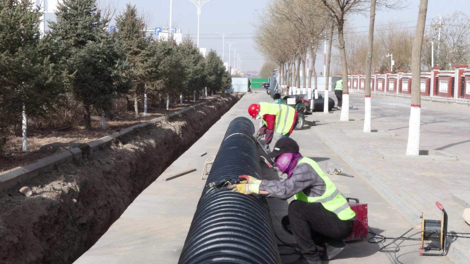 山丹县城区排水排涝二期工程管网改造项目负责人 徐梓林:现在我们的工程管沟已经开挖完成80%了,最近正在进行管道安装,预计在四月中旬左右工程可以全部完工。