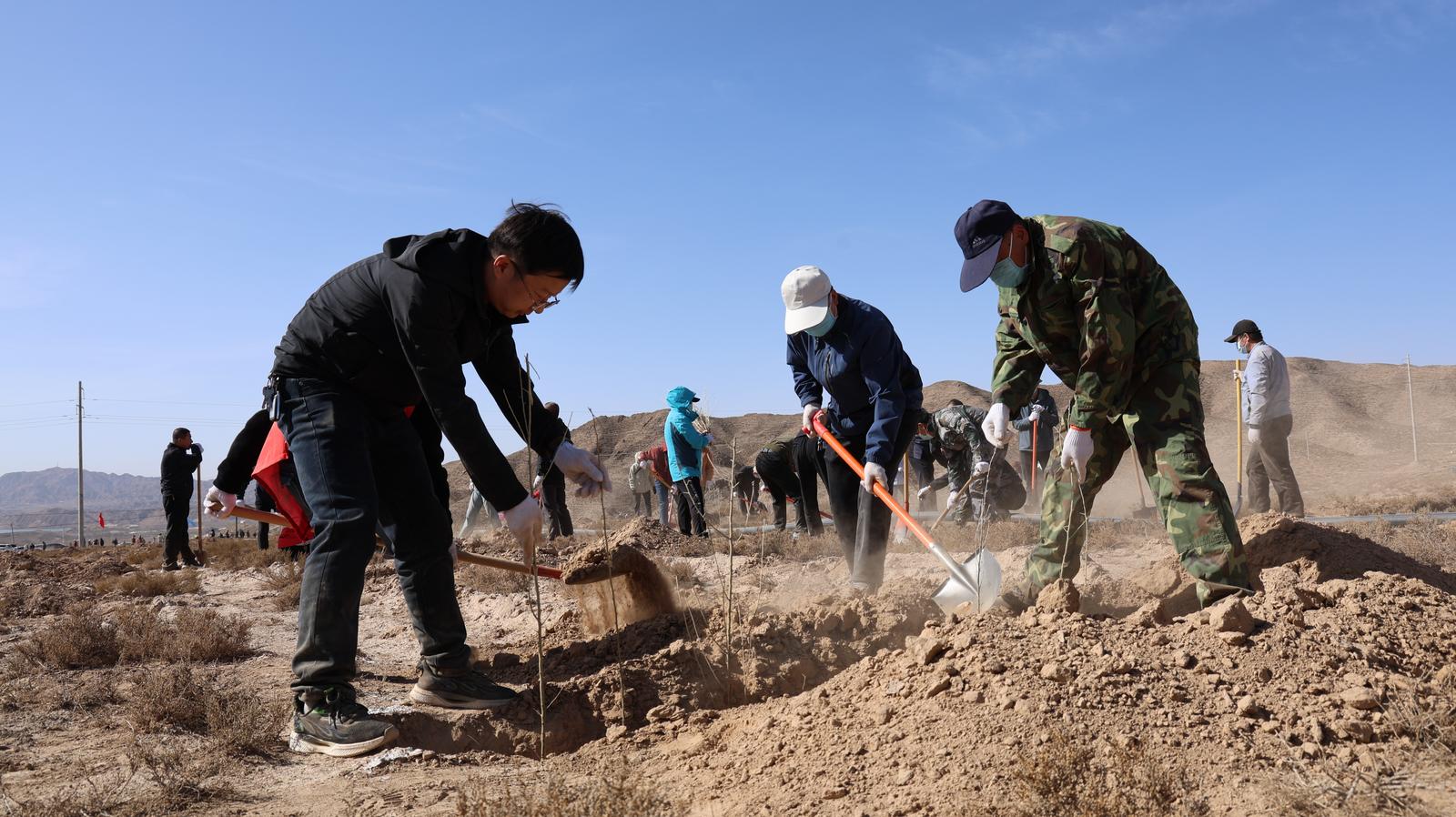 植下一片绿,收获满目春。此次植树活动,山丹县组织了1.4万名干部职工分批次、分区域在清泉城北循环园区、东乐国储林基地等地开展植树造林活动,计划完成3000亩绿化任务,栽植柠条、四翅滨藜、柽柳等11种耐旱树种2.5万株,将进一步提升党员干部群众“保护生态环境、共建绿色家园”的意识和责任,营造“人人参与植绿护绿,同创共建绿水青山”的浓厚氛围。