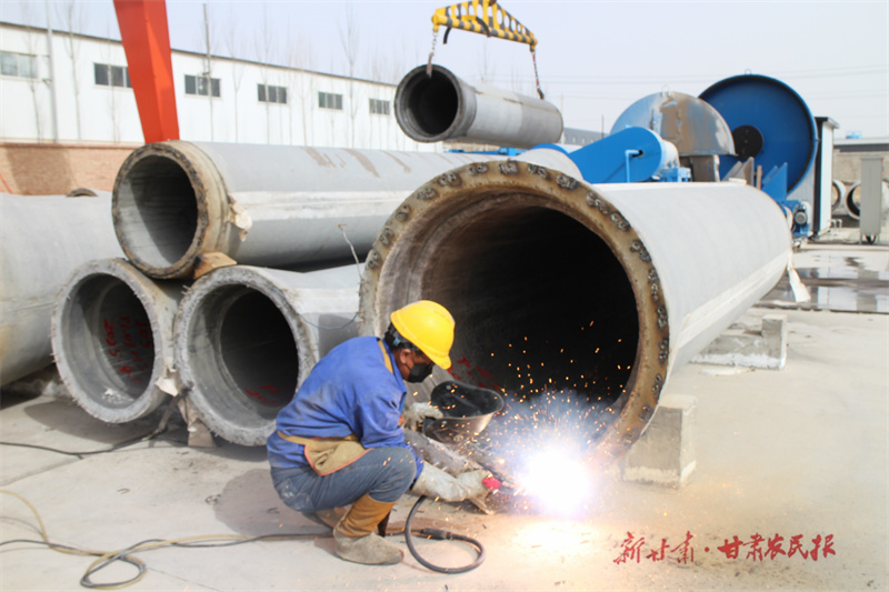 连日来,位于山丹县的甘肃新青龙管业有限责任公司预应力混凝土管(PCP)管道生产线上,工人们正在紧张忙碌地进行节水管道生产。