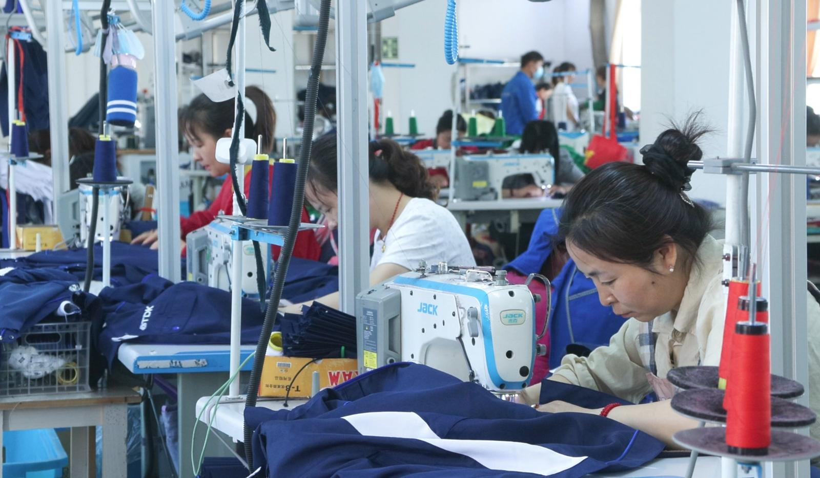 海兰达服饰有限公司员工 马燕霞:我在这边上班四年了。这边离家近,还能照顾孩子和家庭,收入也不错,节假日还有各种福利。
