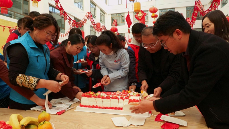 同样,在山丹县中心敬老院活动现场,欢声笑语,其乐融融。文艺表演、巧手传情、义剪焕新、集体庆生……“多元服务·敬老助老”环节温情上演。志愿者们与老人唠家常,以实际行动传递着尊老敬老的真挚情意,让老人们连连称赞,掌声与欢笑声不断。