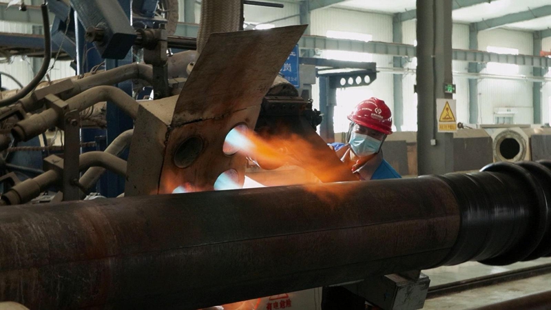 同样,甘肃展通管业有限责任公司的生产车间内氛围火热。一根根PVC、PE管材从自动化生产线有序下线,质检员手持量具仔细核验壁厚与口径,确保每一批次产品符合标准。车间外,成品管材按规格整齐堆码,整装待发。不远处,生产线持续运转,技术工人正熟练操作设备,加热装置喷出内蓝外橙的火苗,映照着忙碌的身影。“我们目前日产能达40余吨,年产预计超8000吨。”副总经理陈东文介绍,产品广泛应用于安全引水工程、高标准农田节水灌溉及市政排水排污等领域,企业正开足马力、加班加点,全力保障重点工程项目施工进度。