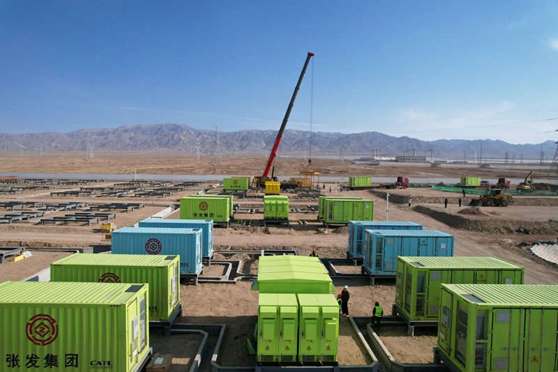 新能源储能是绿色转型核心板块,甘肃辉通新能源300MW/1200MWh独立储能项目现场,现代化“绿电海绵”加速建设。大型吊车精准吊运储能单元,工人同步调试设备、校正位置,施工高效推进。项目概算总投资15.19亿元,占地6.5万余平方米,由60组240个磷酸铁锂电池储能单元组成,是集新能源消纳、电网调峰调频、稳定供电于一体的大型共享储能电站。“项目3月14日开工以来,已完成总进度20%,我们抢抓工期推进基础浇筑与设备吊装,力争早日建成投运。”甘肃精诚电力工程有限公司安全总监吴朝堂说道。项目投运后,将大幅提升区域电网稳定性,推动新能源高效利用,成为山丹绿色工业标志性工程。