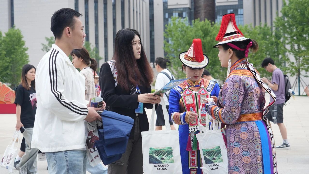 演出现场,绚丽多彩的民族服饰、悠扬动听的民族音乐、热情奔放的民族舞蹈依次登场,极具特色的民族舞蹈更是将活动推向高潮。演员们灵动的身姿、充满张力的表演,展现出各民族独特的文化魅力与精神风貌。欢快的节奏、奔放的舞步,引得台下师生们纷纷鼓掌叫好,现场气氛热烈非凡。活动期间,旅游推介官还推介了肃南的旅游优惠政策和丰富的旅游资源。