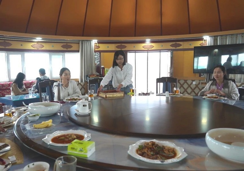“不少游客就是冲着离景区近、不折腾的优势选择我们。”蒙之旅民宿老板张晓红边忙边说:“餐饮我们是做地道蒙餐,好多游客都说看完丹霞出来就能吃到新鲜的蒙式大餐,太满足了。”