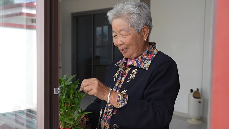 在率先入住的村民王永花家中,老人正同邻居一起坐在客厅喝茶聊天,门口小花坛中的花朵竞相开放随风摇曳,老人享受着居住环境换新后实实在在的幸福与安稳。“8月份刚刚搬进新房来,这个地方环境好、空气也好,新房子政府贴息贷款贷了16万元,我们个人花了五六万,总共花了24万元左右。”王永花老人说道。