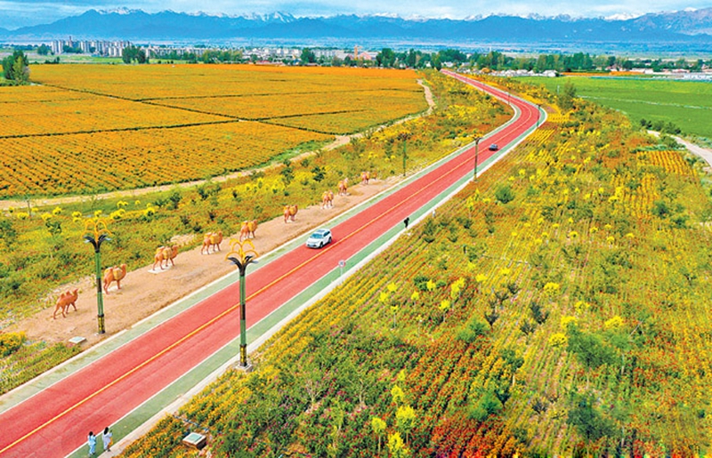 ——发展特色优势产业,助力农民增收致富。六坝镇依托田园资源和农业产业特色,做大做强传统特色优势主导产业,扶持发展花卉基地、中药材基地、高原夏菜基地等三大优势产业基地,进一步提高马铃薯、苹果梨等传统产业效能发展。在六坝村规划建设总面积3万余亩,总投资27.9亿元的民乐现代丝路田园综合体,聚力打造农业产业区、休闲聚集区、文化景观区、生活居住区、综合服务区“五大板块”,涵盖花卉产业园、千亩樱桃示范园、乡村民俗一条街、农耕文化博物馆等,配套住宿接待、餐饮服务、电商物流、健康养生、供水排污、垃圾处理等基础设施,推动乡村“二次开发”,实现了乡村美丽振兴。2022年12月,民乐现代丝路田园综合体旅游景区被评定为国家4A级旅游景区。为拓宽就业渠道,增加农民收入,六坝镇成立农民专业合作社,实施“支部+合作社+基地+农户”发展模式,引导群众就近就业,使群众变产业工人,实现稳定收入。