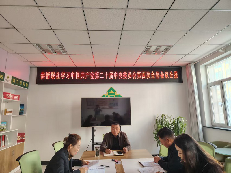 近日,肃南县供销联社组织全体干部职工召开党的二十届四中全会精神专题学习会,深入学习贯彻党的二十届四中全会精神,聚焦供销领域重点任务,推动党的二十届四中全会精神在供销系统落地生根。