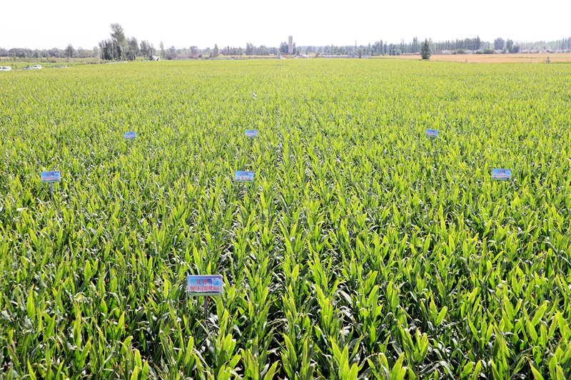 初秋时节,临泽县鸭暖镇大鸭村的盐碱地试验田里绿意盎然,玉米长势喜人,丰收在望。