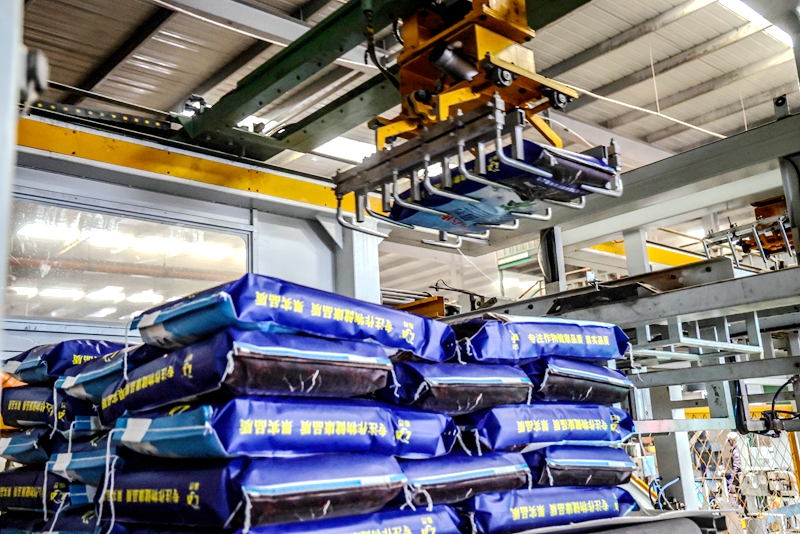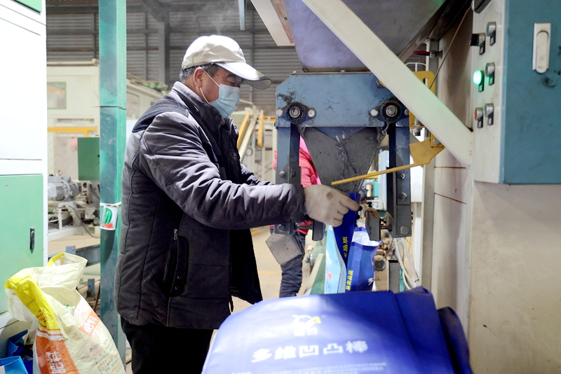 走进临泽县鼎丰源凹土高新技术开发有限公司生产加工车间内,工人们正忙着将晾晒后的凹凸棒石肥料封装打包,等待装车发货。