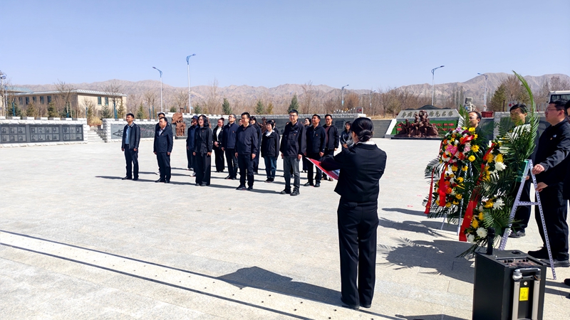 期间,全体党员前往山丹县龙首山公墓,开展缅怀先烈活动。在庄严肃穆的氛围中,党员干部整齐列队,奏唱中华人民共和国国歌,向革命先烈敬献花篮、鞠躬默哀,表达对党的忠诚和对革命先烈的深切哀思与崇高敬意。