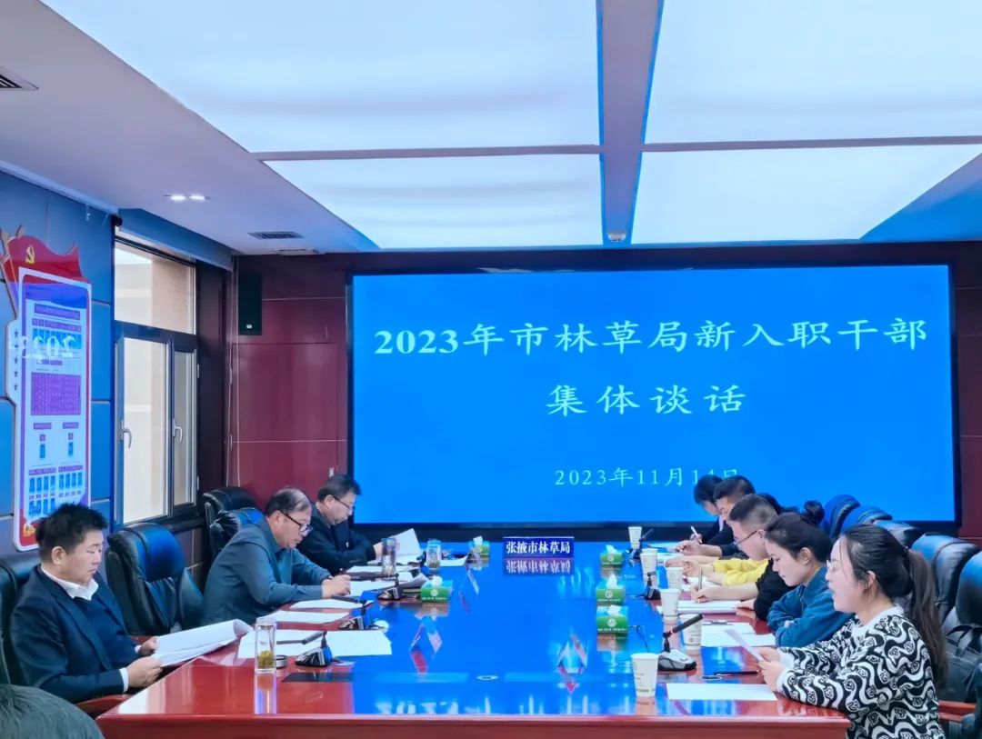 11月14日,张掖市林业和草原局召开新入职干部集体谈话会,局党组书记、局长土建雄,市纪委监委派驻市林草局纪检监察组组长、党组成员仝少坤出席并讲话,局党组成员、副局长李作文主持会议。