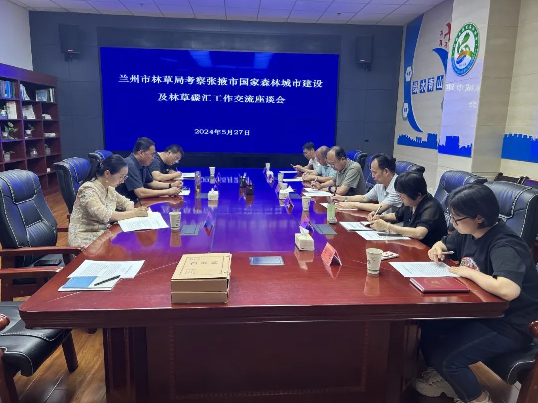 张掖市林草局就全市林草碳汇工作情况向考察组进行了全面介绍,双方围绕林草碳汇体制机制建设、林草碳汇项目储备开发、林草碳普惠碳金融探索等方面进行了深入的研讨交流。