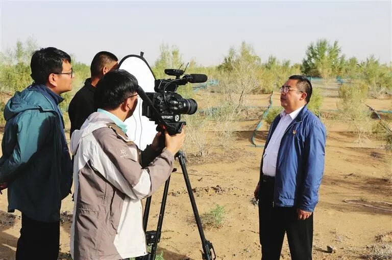 临泽县治沙林场场长杨向刚接受媒体采访。蔡永刚