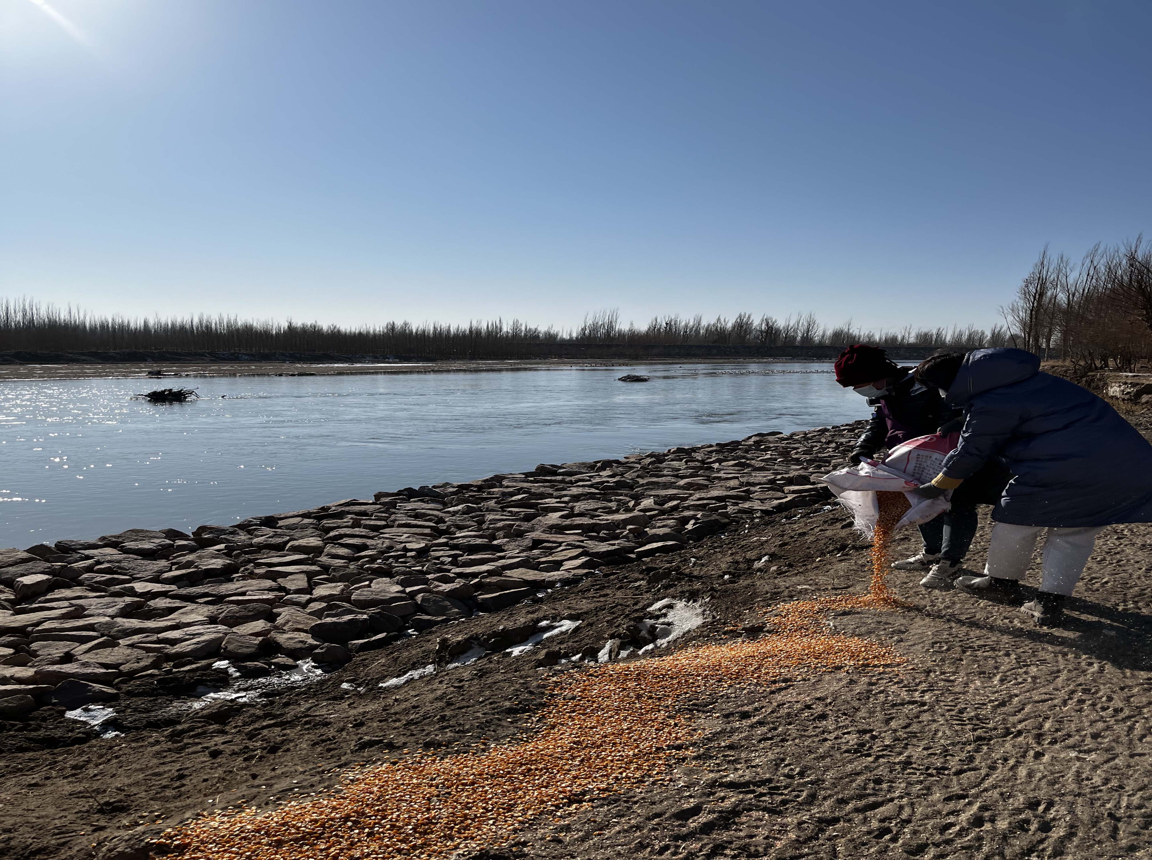 市县两级工作人员深入乌江、靖安至临泽段黑河沿岸开展巡护,对国家三有野生动物赤麻鸭、绿头鸭、大白鹭栖息区域分散投放玉米1000斤,解决食物短缺情况,同时组织人员清理河道沿岸垃圾,及时清除粘网、捕猎套、夹子等非法猎捕工具,有效保护野生动物资源,还野生动物一个安全的栖息环境。