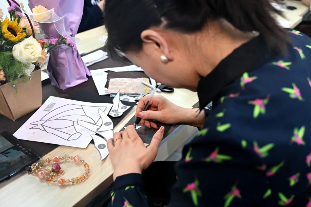 本次活动特邀专业老师现场授课,细致解读宋锦的文化渊源、工艺特色、经典纹样与吉祥寓意,带领大家沉浸式感受“锦绣之冠”的非遗魅力。女同志们暂别忙碌,化身非遗手艺人,认真创作、相互交流,从生疏尝试到熟练制作,一件件精巧的宋锦手作在指尖诞生,在沉浸式体验中品味非遗之美,舒缓了身心、增进了情谊、收获了满满的成就感与文化自信。