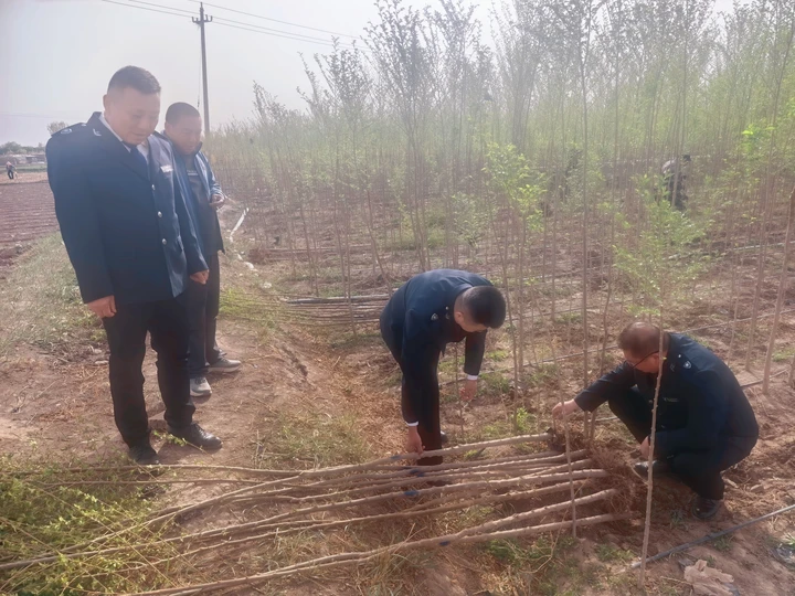 检疫执法现场,工作人员严格按照《林业植物产地检疫技术规程》,通过实地查看、现场抽检等方式,核验植物检疫证书签发是否规范,仔细观察苗木、木材是否有虫孔、蛀屑等现象。同时,积极开展《森林法》《植物检疫条例》等检疫法律法规知识的宣传,增强广大干部群众林业生物灾害防控意识。