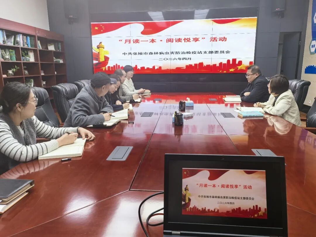 4月21日,在第31个“世界读书日”来临之际,张掖市森防站党支部开展“月读一本·阅读悦享”读书分享活动。党员干部们围坐一堂,结合岗位经历、成长故事与生活感悟,分享经典、交流心得,在书香浸润中开阔视野、汲取力量。