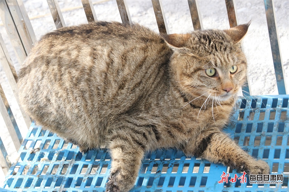 荒漠猫,属国家一级保护动物,是猫科动物中唯一的特有种,主要分布于中国西北地区,体形较家猫大,尾长,四肢略长,耳端生有一撮短毛,主要捕食一些小型的动物。这只被放生的荒漠猫是前期民乐县洪水镇山城村樊姓村民在自家后院发现的,由于平时没有见过这么大的“猫”,村民意识到可能是受国家保护的野生动物,就向公安机关报警救助,森林公安民警随即将这只“大猫”带至办公场所进行喂水、喂食、留观,后经民乐县林草局森林草原湿地保护站专业人员鉴定,是一只荒漠猫,右前爪受伤。经森林公安和林草部门近一个月的喂食喂水、包扎敷药、消毒治疗、精心救助,这只荒漠猫伤势痊愈、体能已恢复,符合放生条件。