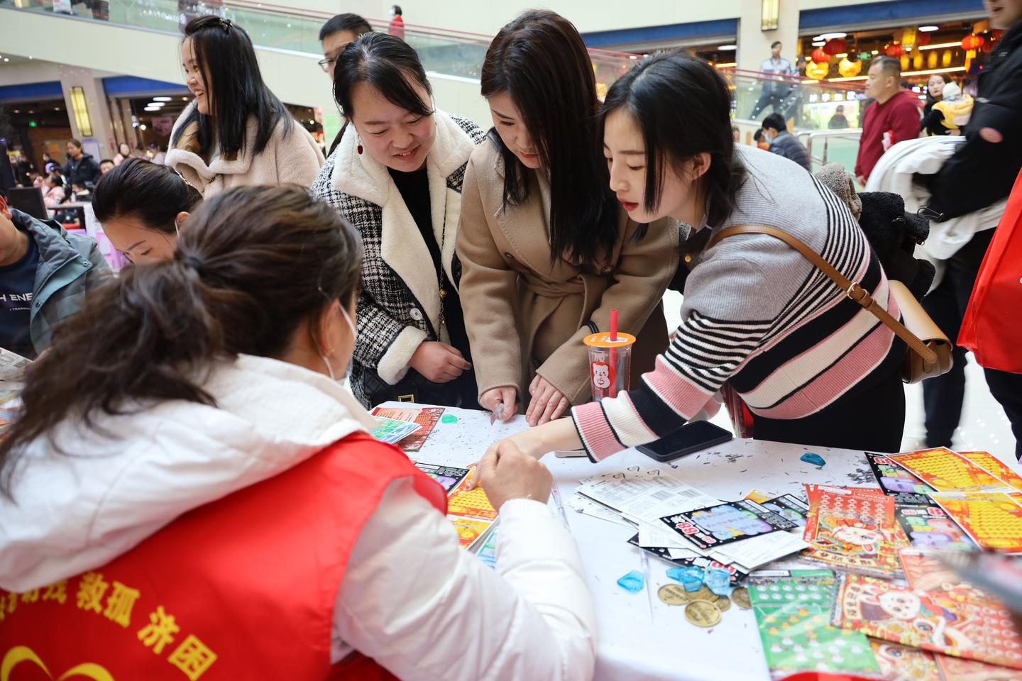 活动现场,不间断派送的卡通玩偶、纸巾纸杯等小礼品让不少市民驻足围观,以“兔”系列即开票为背景的“打卡区”迎来了许多年轻朋友们拍照“打卡”,小丑气球秀、国风舞蹈、乐器表演引来现场一片叫好,更有主持人现场播报“500元中出”“1000元中出”时将现场氛围一次次推向高潮。