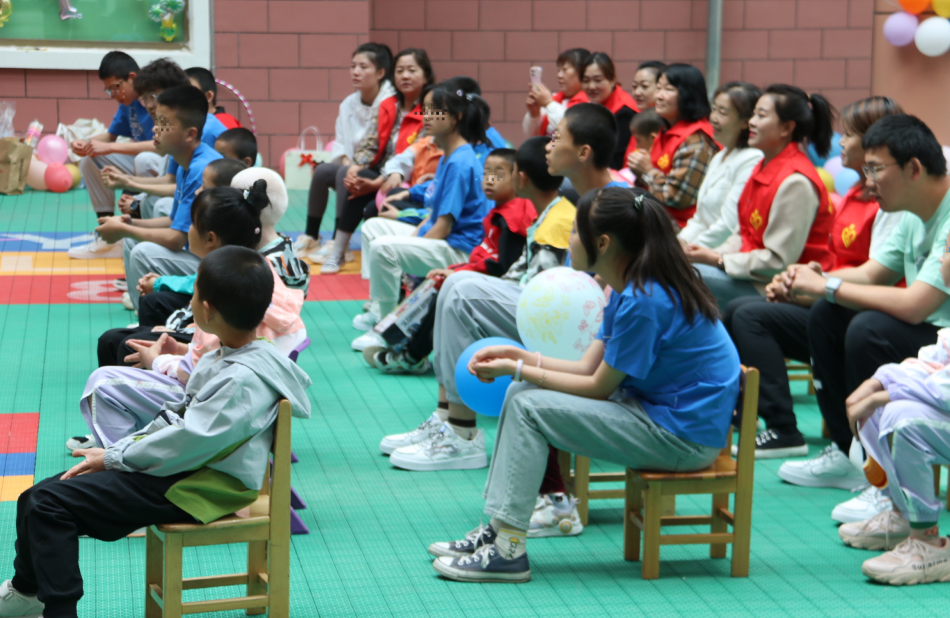活动中,爱心妈妈们和小朋友们做游戏、耐心地与他们交流,详细询问他们的生活学习情况,并为他们送上零食、牛奶、文具等“爱心大礼包”,向孩子们致以节日的祝福。欢庆“六一”文艺汇演火热上演。活动现场充欢声笑语,孩子们沉浸在欢乐的海洋中。