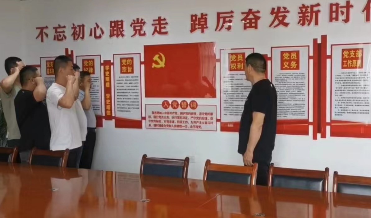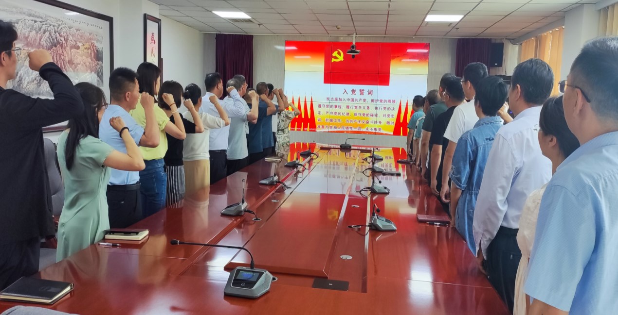 “我志愿加入中国共产党,拥护党的纲领,遵守党的章程……”中心党员活动室,全体党员佩戴党员徽章,在领誓人的带领下,面向鲜红的党旗,举起右拳庄严宣誓。铿锵之言、向党之心,深刻体现了中心党员干部的理想信念和政治信仰。