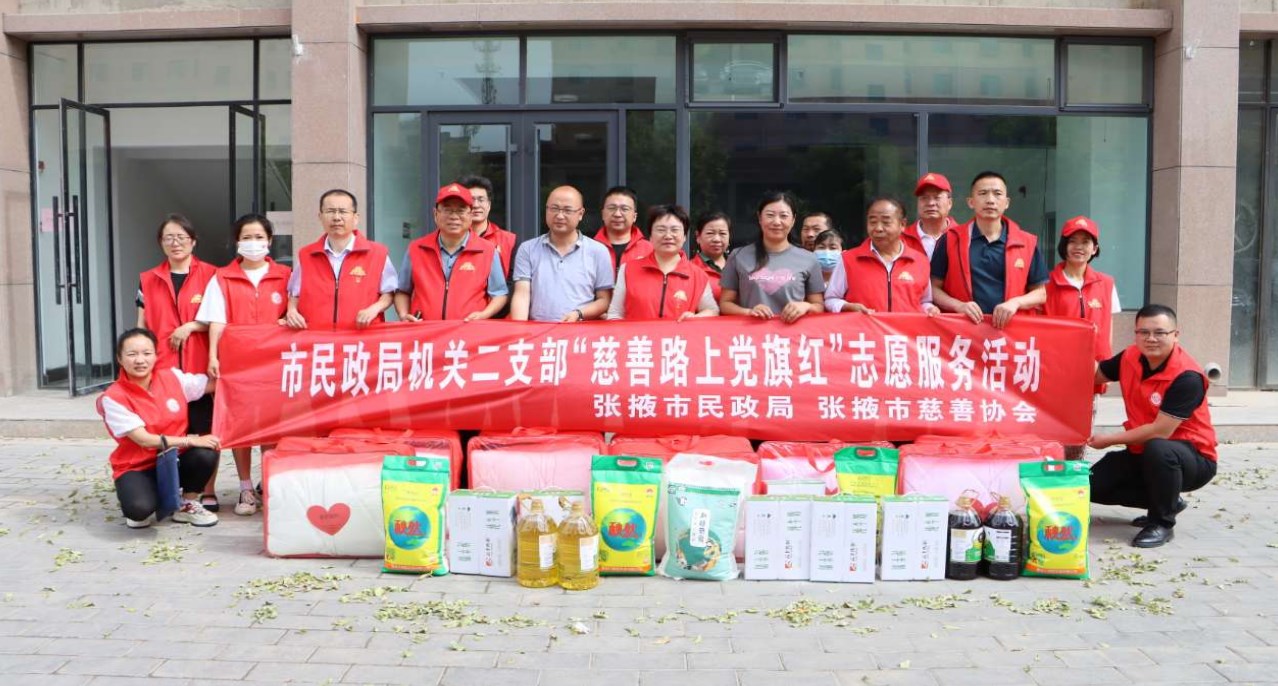 联合市慈善协会,开展“关爱困难党员 擦亮支部品牌”活动,深入推进“慈善路上党旗红”支部品牌创建工作,在共驻共建的甘州区新墩镇五松园社区慰问困难党员群众,为他们送去米面油、牛奶等生活用品,传递党的温暖和关怀,与社区党员群众共同庆祝党的生日。