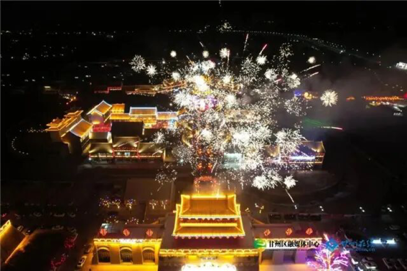 文旅融合促交融,共绘交融和谐画卷。甘州府城,“丝路同心·灯火共明”新春灯会华彩绽放,非遗打铁花、绚烂烟花秀轮番上演,多民族共享非遗元素、传统节庆符号与古建筑巧妙融合,在光影交错中生动呈现中华文化的多元一体与交融共生。七彩丹霞景区内,“丝路彩虹”文艺轻骑兵身着各民族盛装,以鼓乐、民歌、舞蹈演绎丝路故事,赢得游客阵阵喝彩。玉水苑内,《绣楼招亲》《猪八戒背媳妇》等趣味表演诙谐灵动,让市民游客在欢声笑语中感受非物质文化遗产的独特魅力。冰沟丹霞景区,创新打造“非遗民俗+自然奇观”特色场景,震天锣鼓与赭红色岩壁交相辉映,舞龙舞狮队伍在峡谷间精彩展演,同步开展的投壶、巡游等新春互动活动,成为新春最浓郁的“年味符号”。大佛寺广场前,全市社火调演热闹开演,甘州腰鼓与高台舞狮交相辉映,裕固族原生态歌舞与汉族秧歌同台竞演,传统社火变成了各民族共庆佳节、共享欢乐的生动舞台,展现了“各美其美、美美与共”的和谐图景。