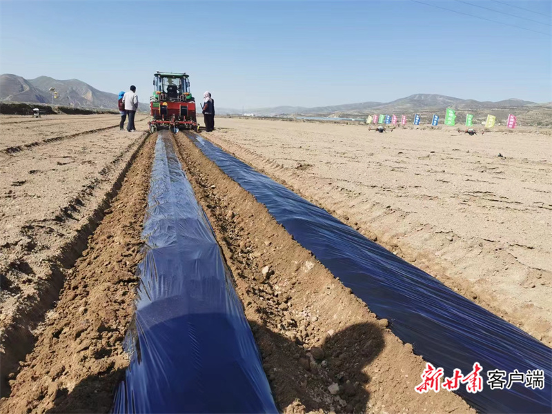 陇西县中药材覆膜种植。
