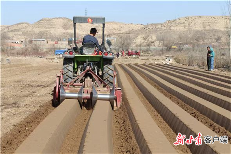 临洮县农机作业服务队整理土地。