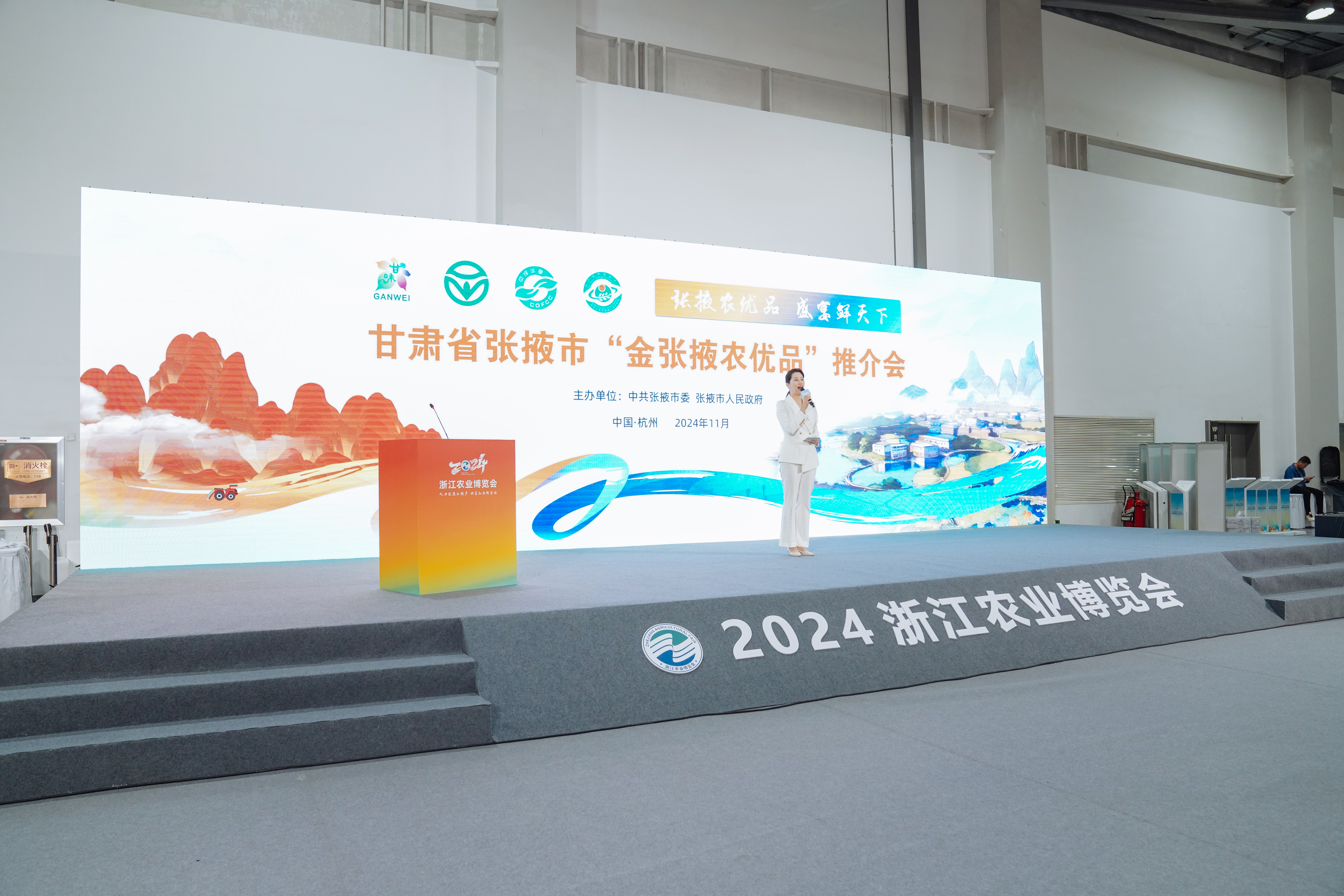为深入贯彻落实省委省政府“甘味”出陇和市委市政府张掖市农产品品牌发展战略,11月22日,张掖市农业农村局在杭州市国际博览中心2024年浙江农博会现场举行甘肃省张掖市“金张掖农优品”推介会。