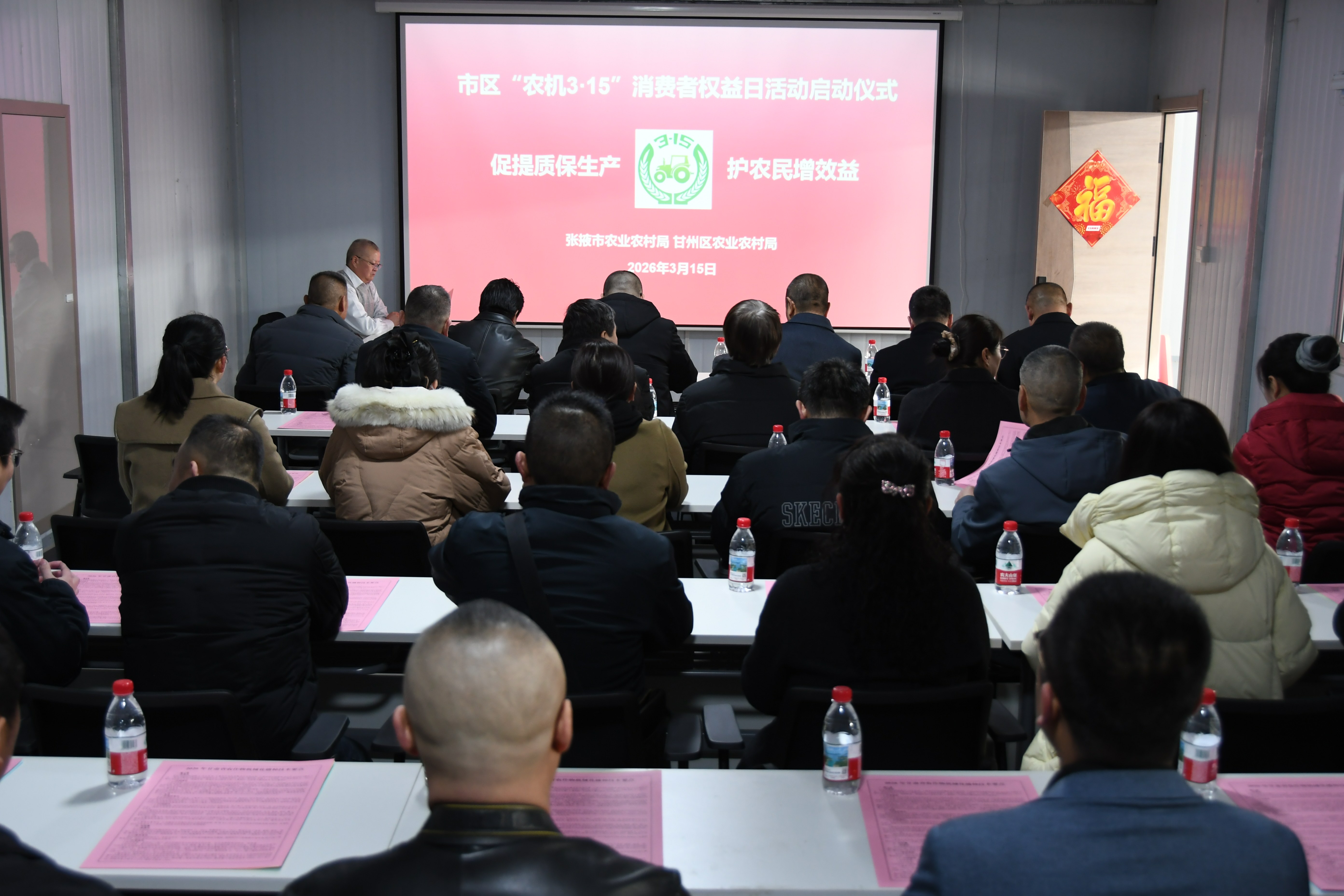 3月15日,以“促提质保生产、护农民增效益”为主题的张掖市“农机3·15”消费者权益日活动在张掖市发展集团物流园农机市场正式启动。本次活动由市、区两级农业农村部门联合组织开展,市、区农业农村局、农机推广站、监理站、执法队工作人员,甘州区农机生产、经销、维修企业及农机专业合作社负责人代表70余人参加了启动仪式。