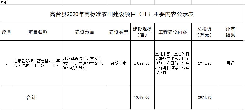 附件:高台县2020年高标准农田建设项目(Ⅱ)主要内容公示表