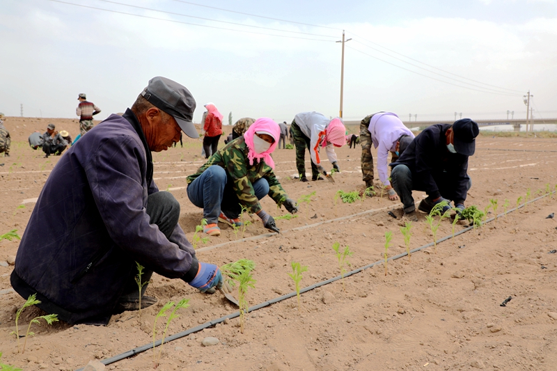 近日,走进临泽县新华镇宣威村,田野里机车隆隆,人声鼎沸,好一派忙碌热闹的景象。包村干部、村干部、党员、入党积极分子、社长、农户义务出工,在村集体流转的土地上种起了万寿菊。