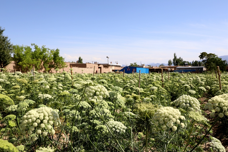 在种植户的精心浇灌、施肥管护下,种株粗壮、果实累累,一派丰收在望的景象。通过统一移栽、管理、收获、销售,完全颠覆了往年种植制种胡萝卜的模式,蹚出了一条致富增收的新路子。