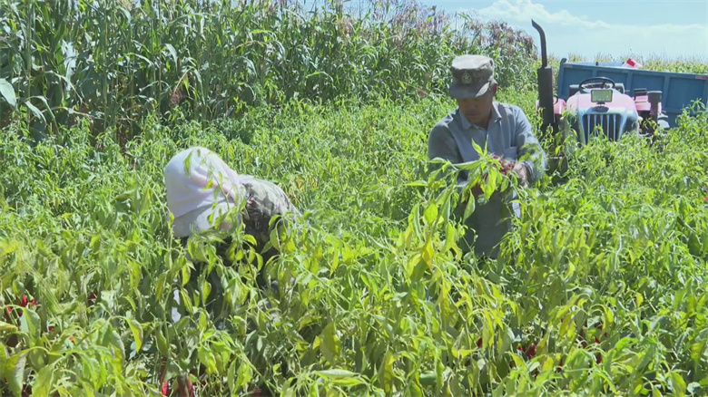 黑泉镇十坝村党支部书记 常永畔:“我们村上今年种植辣椒300多亩,有板椒、羊角椒、线椒,亩收入在3500-4000元左右。”