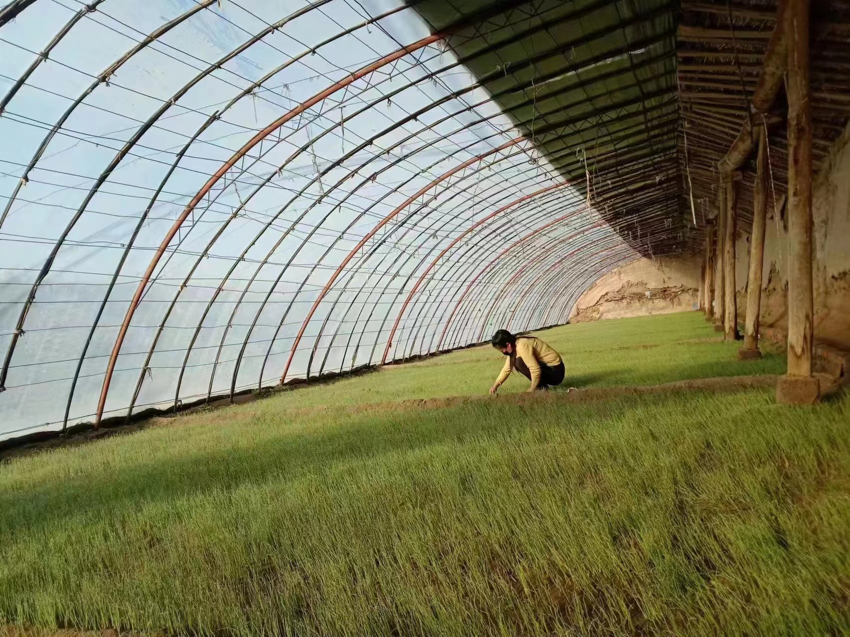 中国张掖网临泽讯 时下,走进临泽县蓼泉镇下庄村温室大棚基地,一株株洋葱苗早已破土吐绿,长势喜人,十几名农民工正在抓紧给洋葱苗除草。“洋葱我是从5年前就开始种的,今年育苗马上一个月了,出苗相当不错,长势也好,三月底四月初就能出棚了,每棚可达8000元左右。洋葱在育苗、种植、间苗、除草、管理、收获的每一个环节都需要大量人工的投入,这给周边农户提供了不少务工机会。”下庄村二社社长刘正国说。下庄村借鉴以往经验,发现本土培育的洋葱苗对气温、水土等适应性强,成活率较高,因此鼓励种植大户就地育苗、就近移栽。