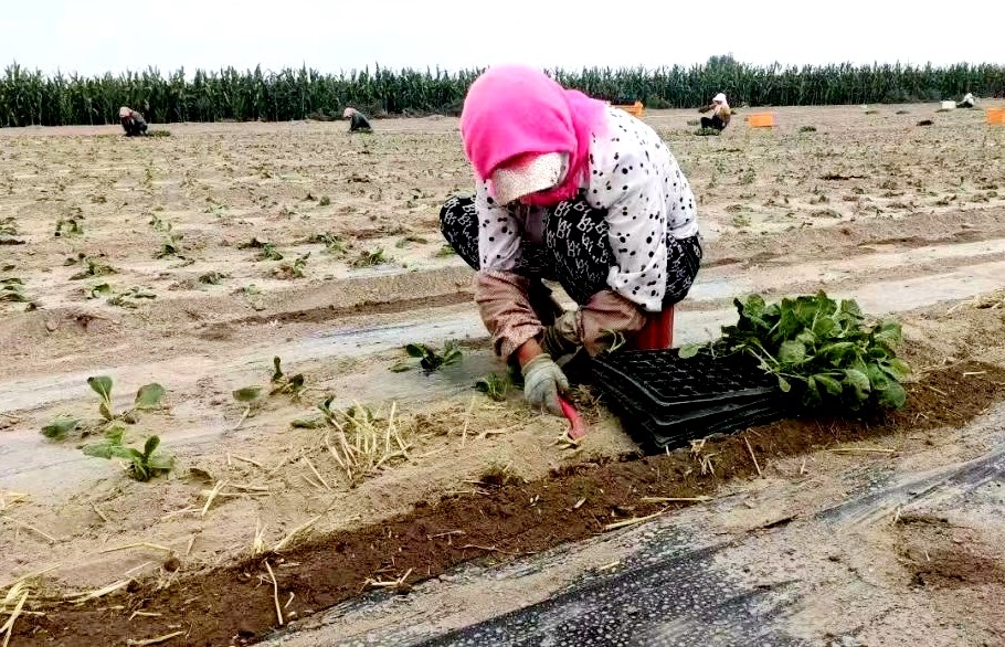 近日,临泽县板桥镇抢抓夏收后的“黄金”时节,复种蔬菜、荞麦、燕麦等秋粮作物,田间地头一派繁忙的景象。