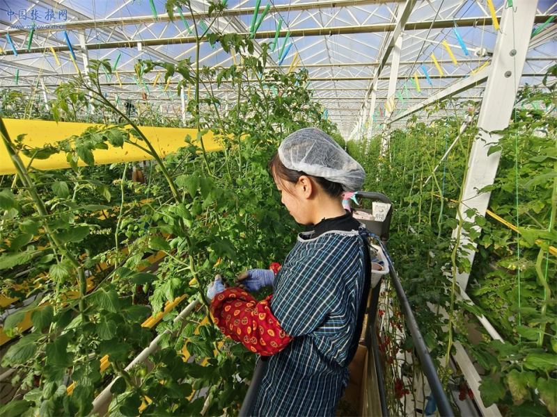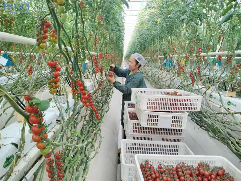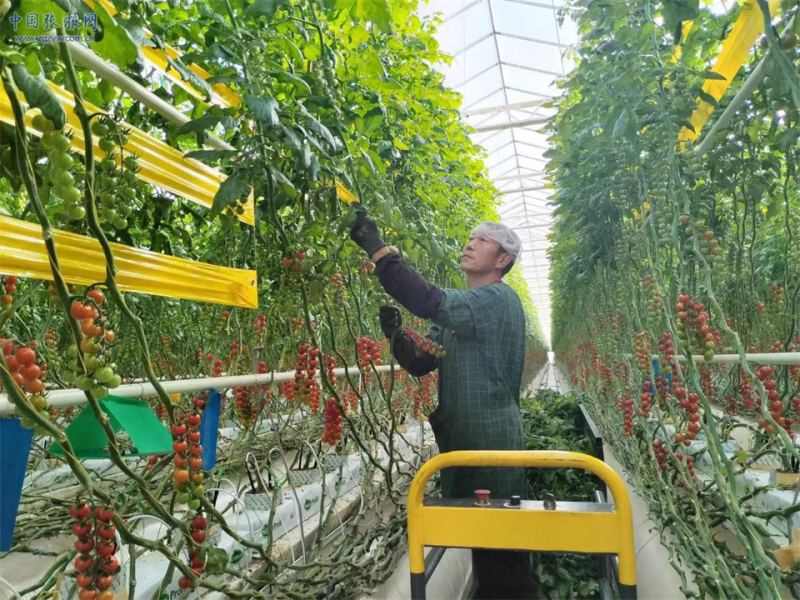 中国张掖网民乐讯 民乐县突破传统局限,科技助力戈壁农业智能化、产业化发展。张掖超越发展农业有限公司就是传统农业向科技农业转型的典型代表,公司位于张掖市民乐生态工业园区,公司采用世界上先进的荷兰智能温室工业化栽培技术,建成的国内单体规模大、运营面积广、种植技术聚集度高、节能环保程度一流的现代智能玻璃温室。公司主要生产串收番茄,在全国各大商超均有销售。