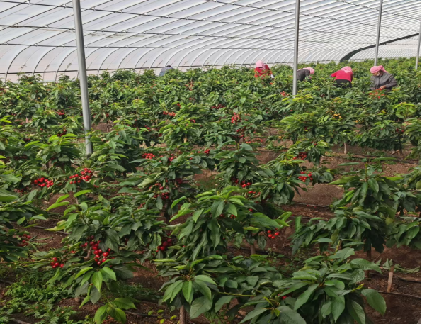 据了解,该公司共栽植温室大棚樱桃16座35亩,2.8万株,今年的大棚樱桃4月中旬就能抢鲜上市,樱桃熟的早,就能抢占市场,卖个好价钱。据泓缘苗木有限公司负责人李彦弘介绍,樱桃上市每斤价格在60-100元左右,从开花、结果、上市可采摘至5月底,产果季每棚预计产值在2000-3000斤,每座棚收入10万元左右,成为名副其实的"摇钱树”。同时温室里铺着反光膜随时提供日光浴、温湿度实时监控,使温室里的樱桃实现了“早睡早起”,先进的种植技术让樱桃实现了60天鲜果不间断供应,在满足人们味蕾的同时也实现了产业收益的最大化。同时,用工旺季可吸纳周边农户100余人务工,增加群众务工收入。