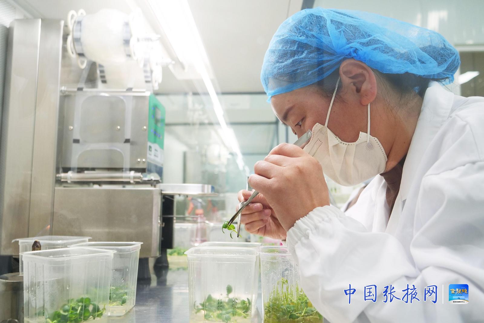 走进山丹县正明种植有限责任公司,脱毒、检测、鉴定、育种全流程标准化作业,科技感十足。工作人员严格按照无菌操作流程,在超净工作台前精准取苗、接种,每一个培养瓶都清晰标注品种代号、处理类型、个人编号和接种日期,脱毒种苗在恒温光照培养室里茁壮生长。“我们每天用工15人,平均每天扩繁1500盒,预计今年扩繁1000万株,4月20日后下地移栽,可生产原原种2000万粒,扩繁原种面积5000亩、产量达15000吨。”公司组培室主任杨小红介绍,企业培育出大西洋、陇薯红一号、西森六号等九个马铃薯品种,脱毒种苗品质优良,为全县马铃薯产业提质增效奠定了坚实基础。
