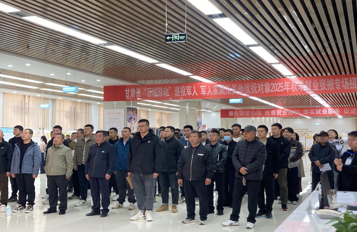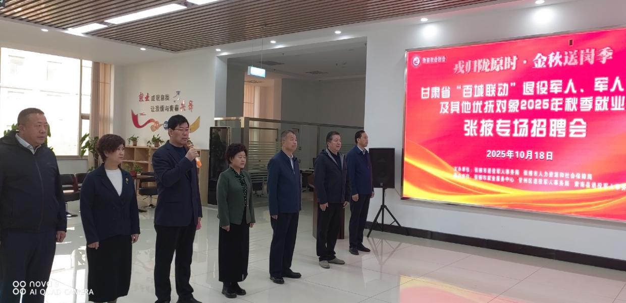 10月18日,以“戎归陇原时·金秋送岗季”为主题的“甘肃省‘百城联动’退役军人、军人家属及其他优抚对象2025年秋季就业张掖专场招聘会暨直播带岗活动”圆满举行。本次活动市上主会场由张掖市退役军人事务局、张掖市人力资源和社会保障局主办,张掖市就业服务中心、甘州区退役军人事务局、肃南县退役军人事务局联合承办,同时在县区设立分会场。专场招聘活动共吸引了860名退役军人、军人家属及其他优抚对象到场参会,121人与用人单位初步达成就业意向,活动取得了显著成效。