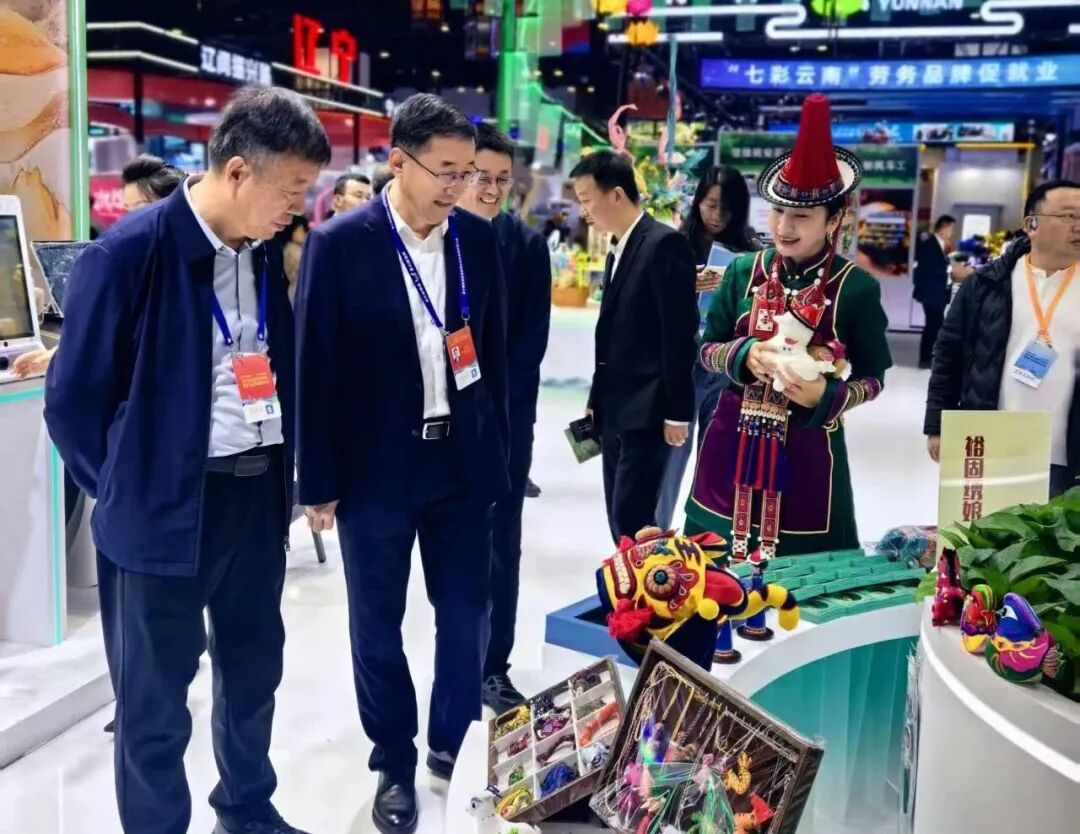 在大会中央舞台,裕固绣娘《绣缀裕固》节目先后进行了3场次展演,通过“技艺传承—技能增收—以业兴村”的叙事主线,沉浸式演绎裕固绣娘从“守艺”到“创富”的奋进故事,生动诠释了劳务品牌助力乡村振兴的工作成效,赢得与会领导、嘉宾的一致好评。在大会品牌成果展区甘肃展馆内,“裕固绣娘”展台人气高涨,裕固族头面、服饰绣件、文创摆件等百余件刺绣精品整齐陈列,络绎不绝的与会嘉宾纷纷饶有兴致地驻足观赏,并与品牌负责人详细交流,了解刺绣技艺与品牌发展情况,有力提升了我市劳务品牌在全国范围内的知名度与影响力。