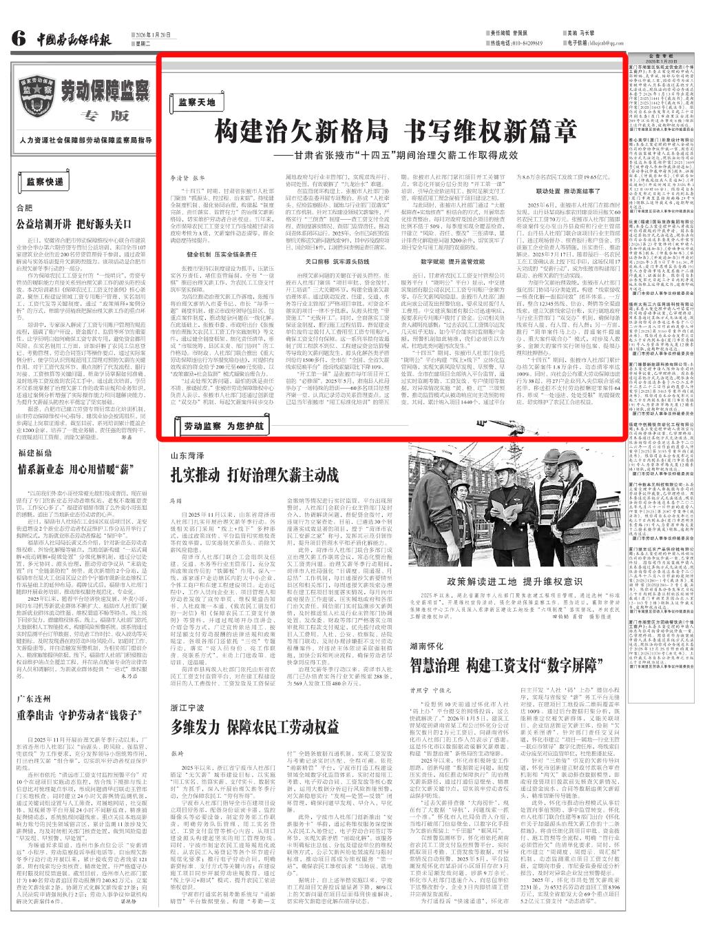 《中国劳动保障报》2026年1月20日劳动保障监察专版
