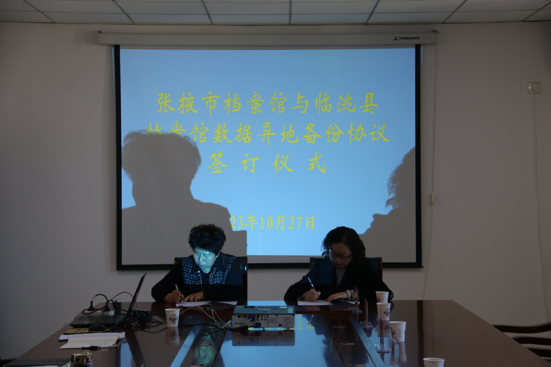 临洮县档案馆一行先后参观了查阅大厅、消防控制中心、档案库区、数字化加工区、中心机房、展厅及陈列室等,并就队伍建设、城建档案在线接收、档案查询利用等业务工作开展了座谈交流。随后双方举行了档案数据异地备份交接仪式,签订了档案异地备份协议。